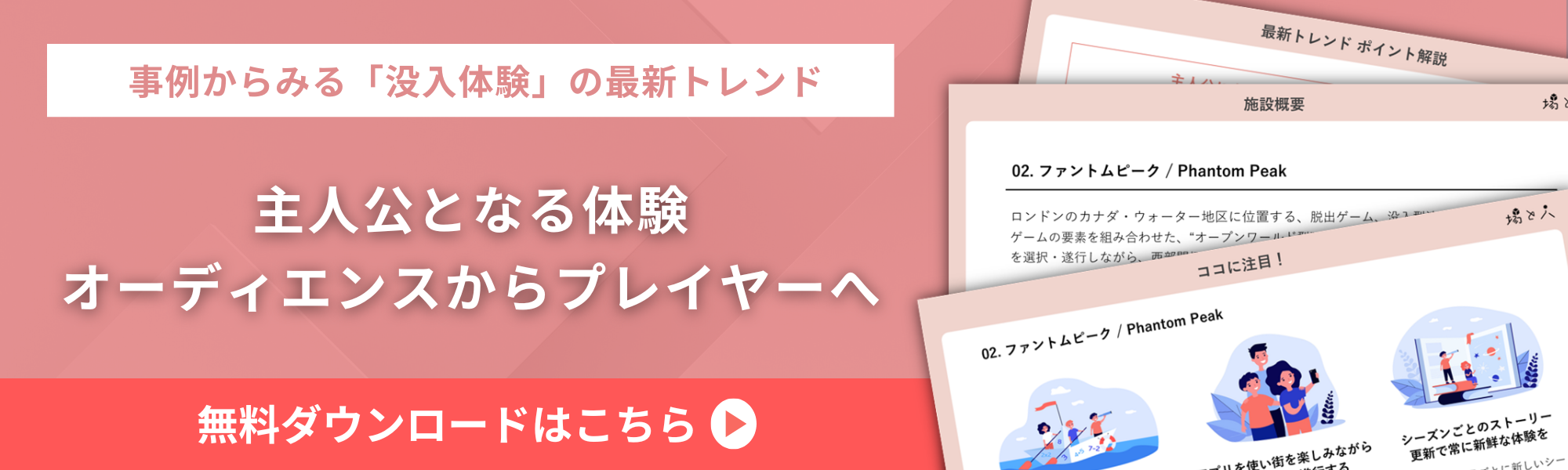 本レポートから、エンタメ施設においてさまざまな形での没入のあり方の追求・進化が進んでいることがおわかりいただけたでしょうか。没入体験の提供を考えるうえで、少しでも参考になれば幸いです。