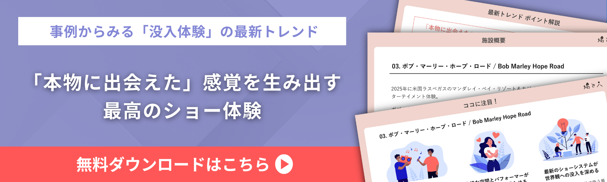 エンターテイメント施設において、「没入体験の提供」はもはや一過性のトレンドではなく、当たり前ともいえるほど定着しつつあります。没入感はエンタメ体験に当然備わっているものであるとして、そのうえでどうすれば新奇性が出せるか、ゲストが目新しさを感じられる没入のあり方の追求が続いています。本レポートでは、海外の新しいエンタメ施設の数々から見えてきた没入体験のトレンドとその具体的な事例をご紹介します。