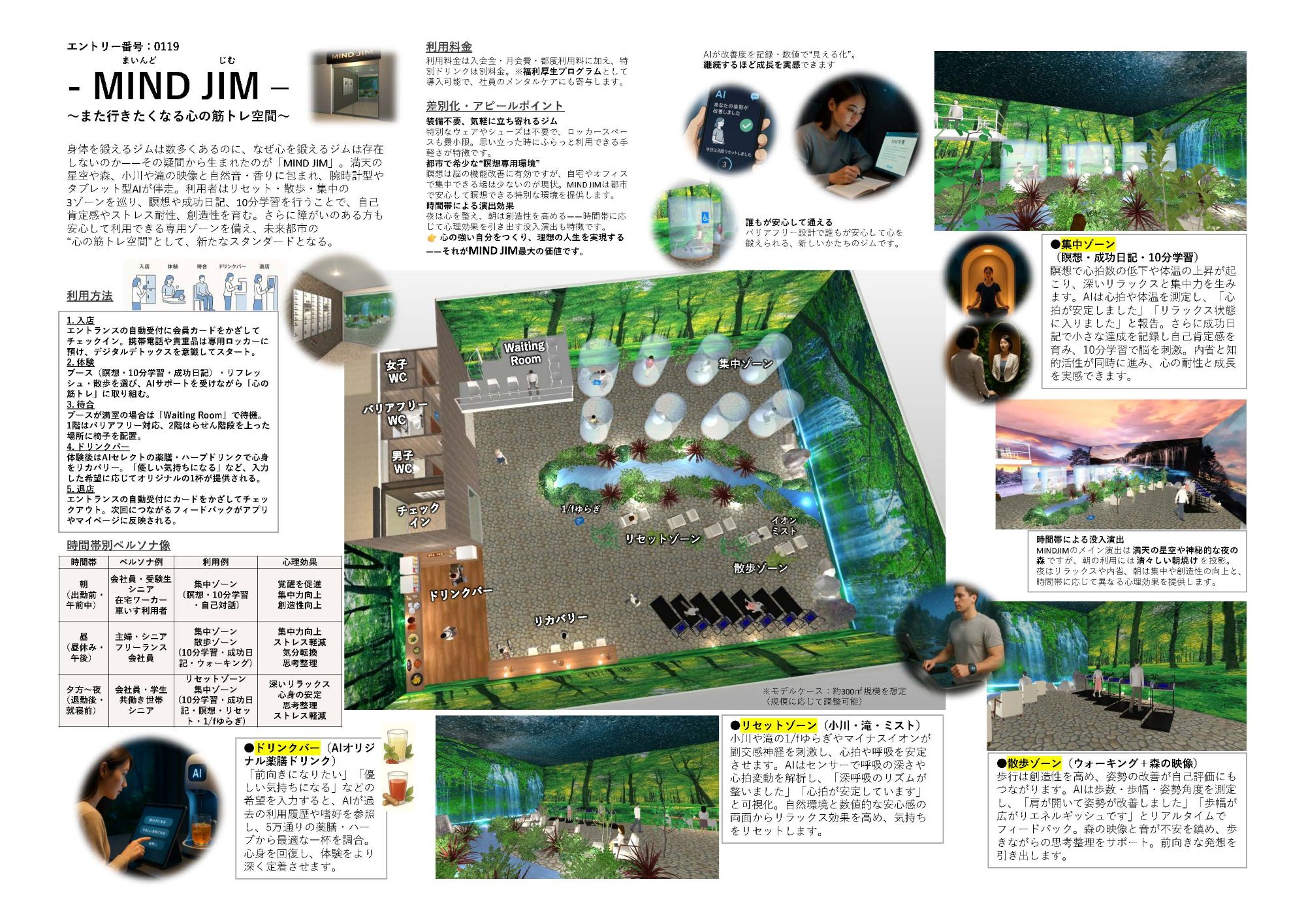 身体を鍛えるジムは数多くあるのに、なぜ心を鍛えるジムは存在しないのか。 車田さん、志鎌さんのそんな問いから生まれたのが、AIと自然が導く「心の筋トレ空間」、MIND GYM です。 森の映像、自然音、香り、ミストに包まれながら、AIの伴走によって リセットゾーン→散歩ゾーン→集中ゾーンの3つをめぐる構成。自己肯定感やストレス耐性、創造性を育む心のトレーニングが体験できます。 最大の特徴は、ウェアもシューズも不要で、街中でふらっと立ち寄れる手軽さ。都市では希少な心の筋トレ環境として、朝は創造性を高め、夜は心を落ち着かせるなど、時間帯に合わせた没入演出も魅力です。