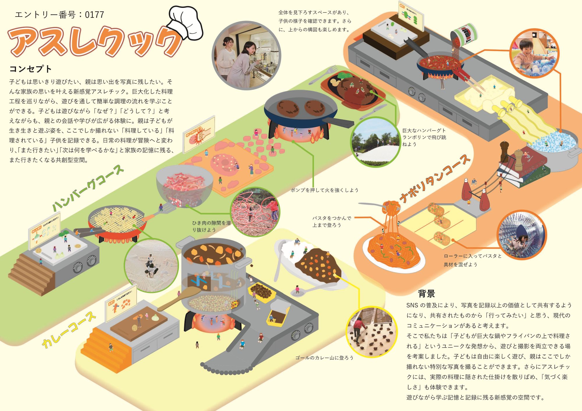 スマートフォンとSNSの普及により、日々たくさんの写真を撮り、共有することが当たり前になった時代。誰かの投稿を見て「あ、行ってみたい!」と思うのは、ごく自然なコミュニケーションになりました。そんな背景を踏まえて、遠藤さん・越後さん・大澤さんが考えたのが、料理をテーマにした新感覚アスレチック「アスレクック」です!