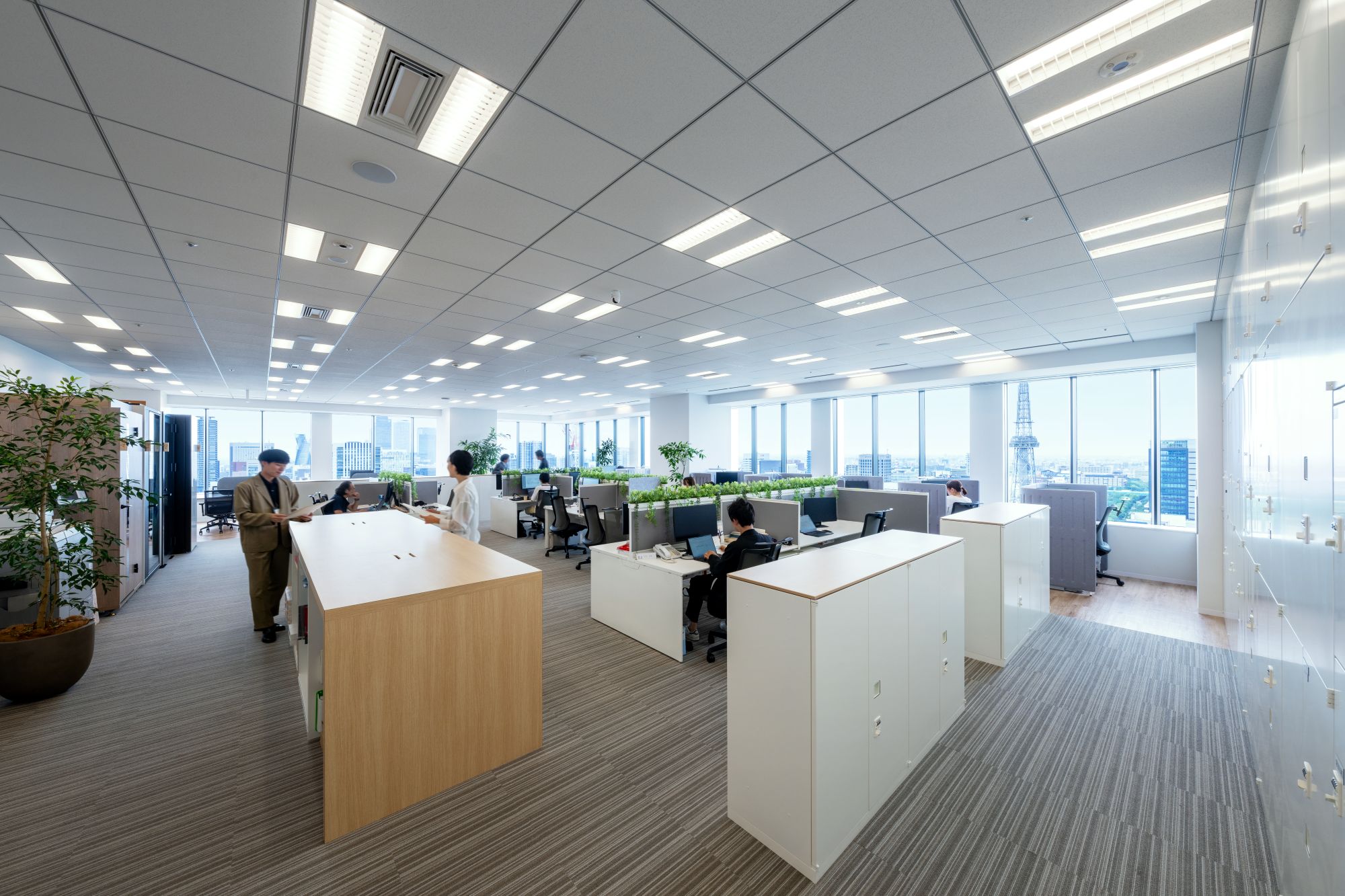 名古屋支店は2024年4月にBCP(事業継続計画)対策として最新のビルへ移転。関西支店は2025年2月に増員計画への対応として、1フロアから2フロアに増床しました。経緯は違えど、いずれも一連のウェルビーイングやサステナビリティ対応をふまえたリニューアルです。