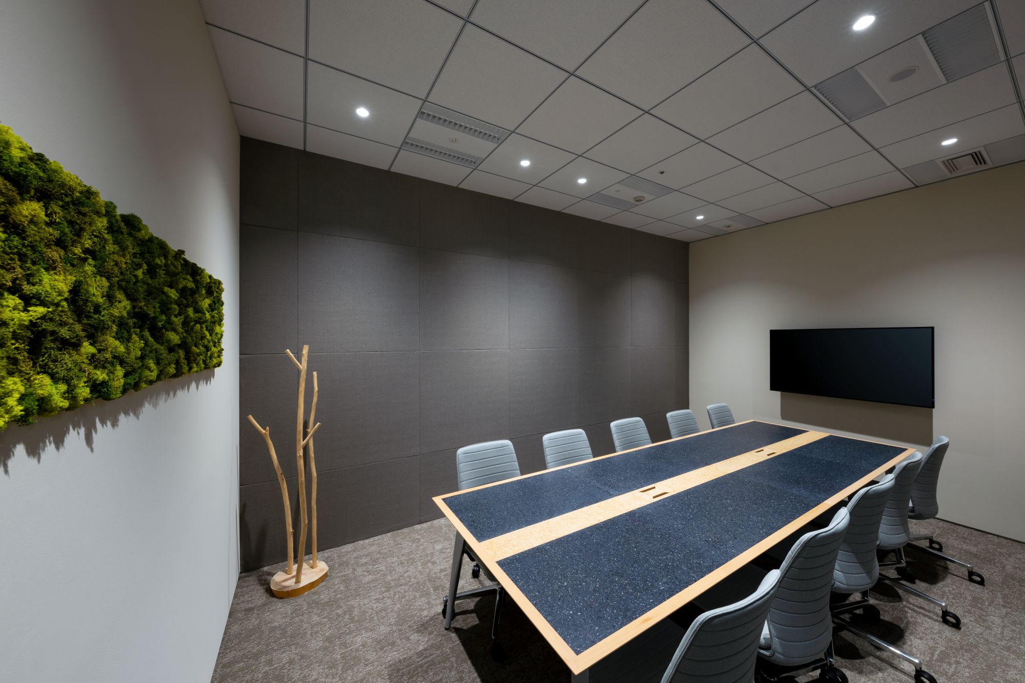 「クライアントの目標達成のために空間をデザインするのが私たちの仕事です。サステナビリティは与件に無くても当たり前に考えるもの。今回は、本社と支店のブランドイメージを揃えたいというクライアント(経営・総務)の意向を受けて、丹青社本社のラウンジスペース『クリエイティブミーツ』の雰囲気をイメージしてデザインしました。その上で、違和感なくサステナブル素材が取り入れられた空間となることを目指しました」