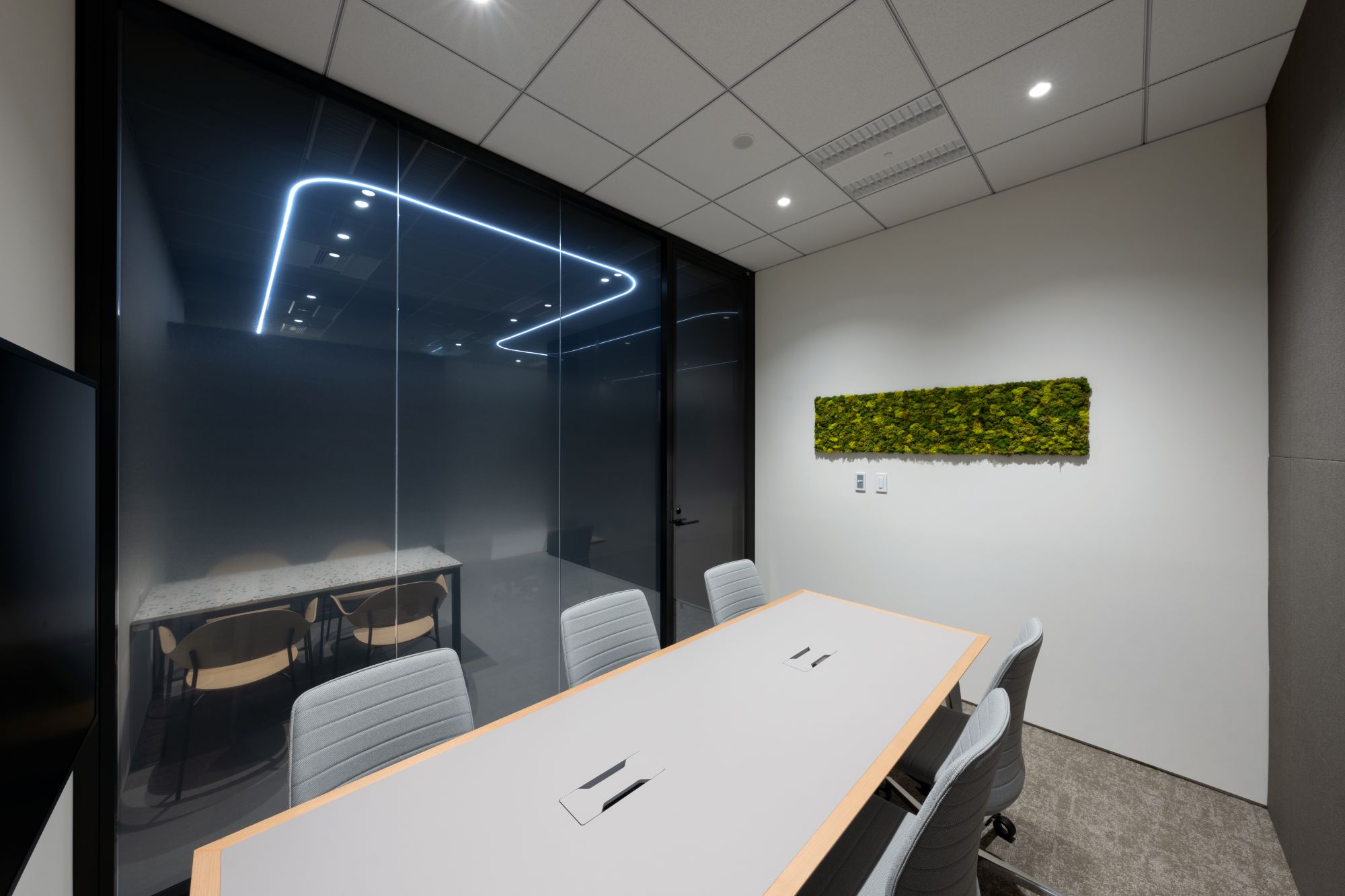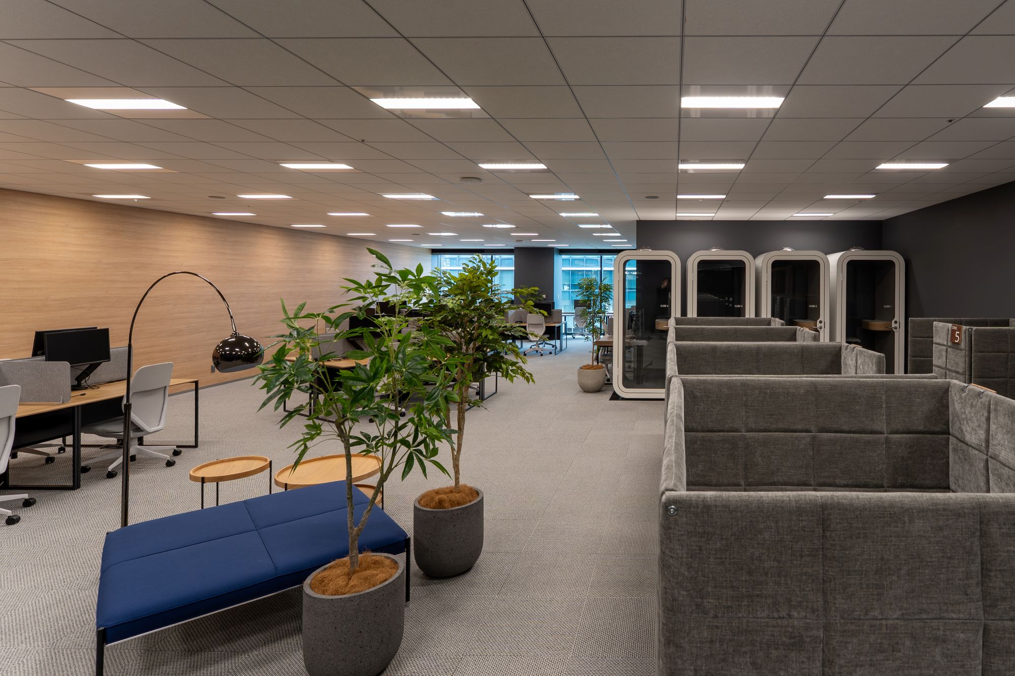 「既存フロアは社内のコミュニケーション活性化を狙うコアワークエリアとし、新フロアは、外部の方にも入って頂けるミーティングエリアと集中作業向け執務エリアで構成することとしました。これにより社員全員が新フロアを利用する動機を持つことができます」